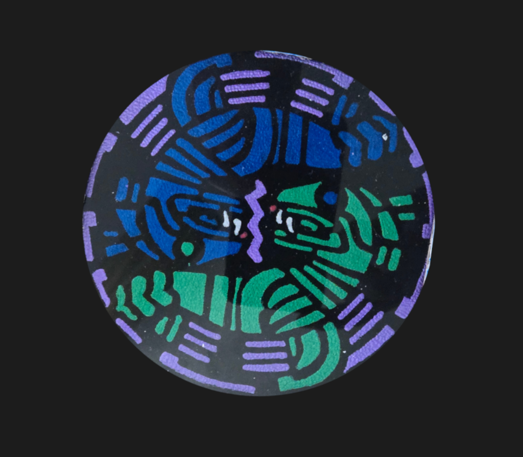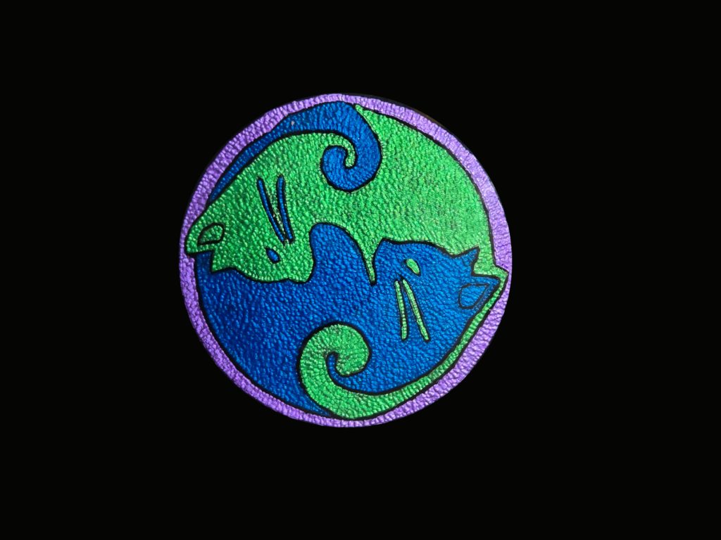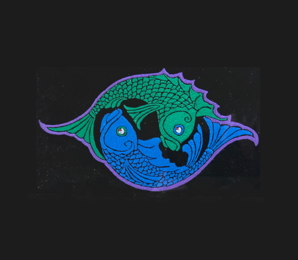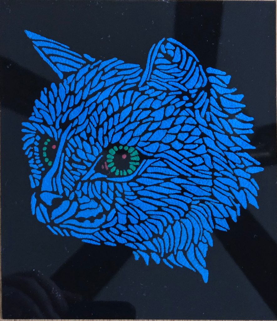 Art from Thomas Birchmire, Winter Park, Florida. He specializes in what he terms as tattooed glass. The images are etched in reverse on recycled glass using a Dremel rotary drill. Once the image is complete, the colors are painted in also from the rear of the glass.